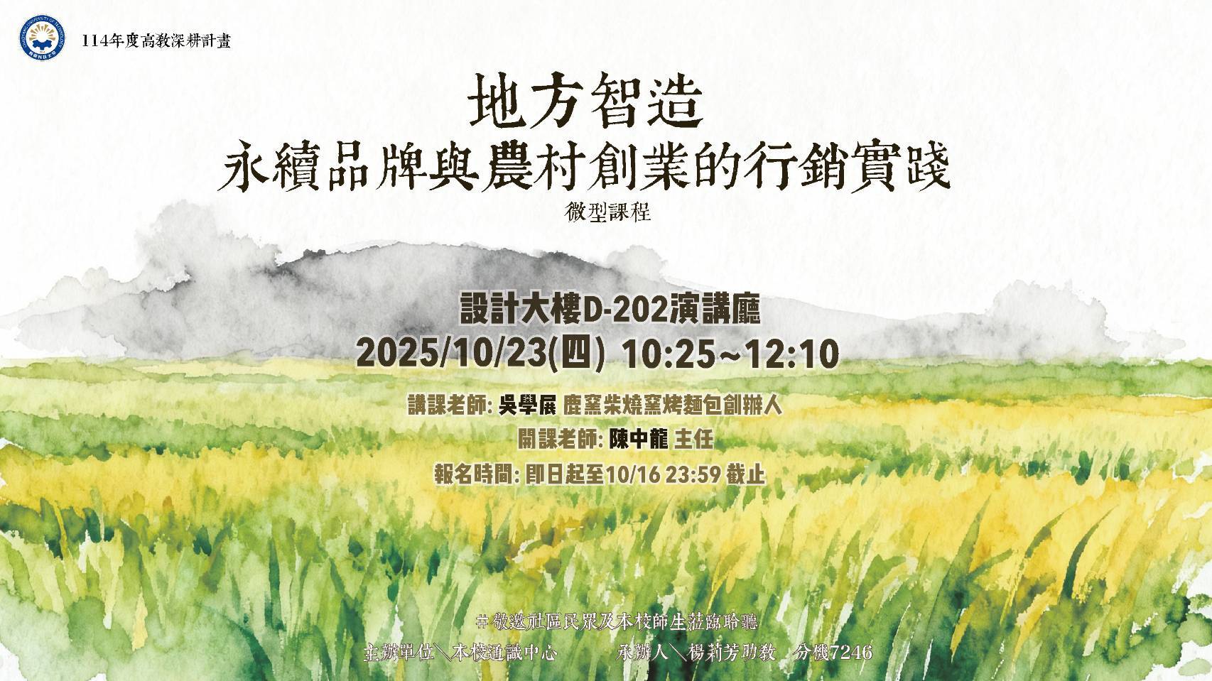 114-1 微型課程~地方智造:永續品牌與農村創業的行銷實踐(六)