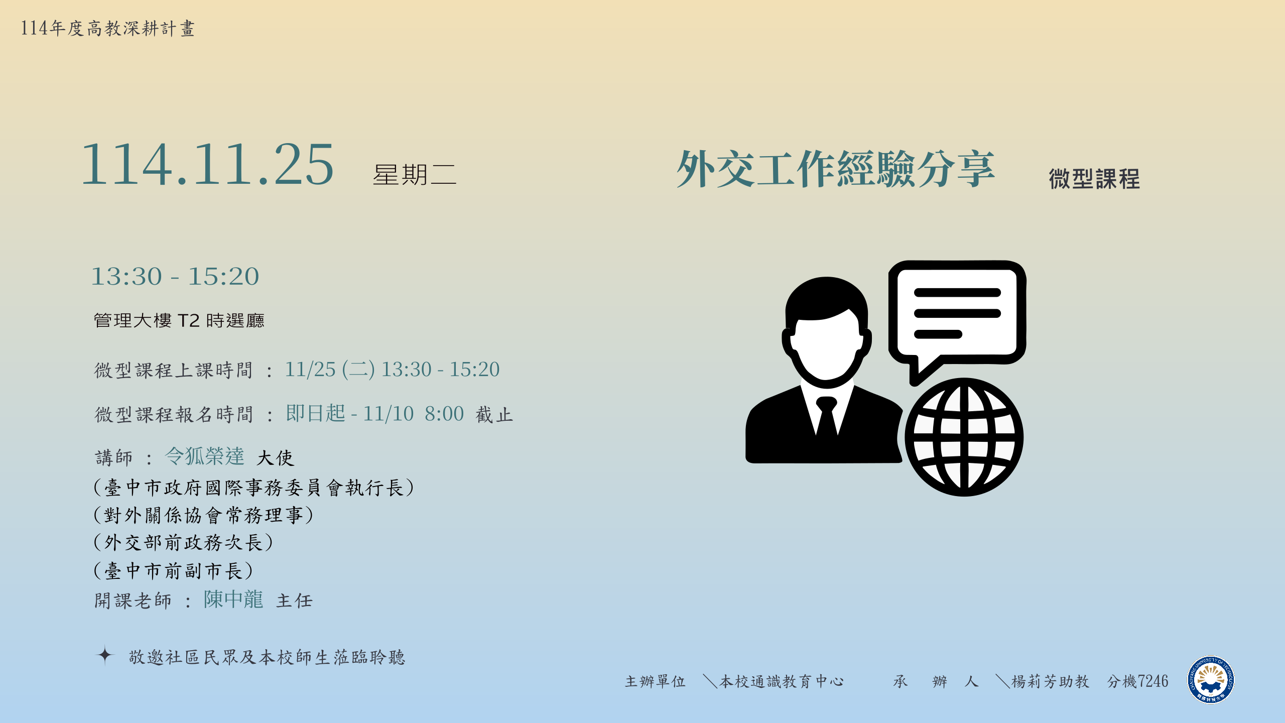 114-1 微型課程~農業綠金流:永續策略與市場經驗的跨界交流(十三)